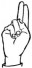 На ћирилици написано ДАНИЈЕЛ РЕСКОВИЋ састоји се из 15 слова [?]. Исписано ћириличном једноручном азбуком за глувонеме: